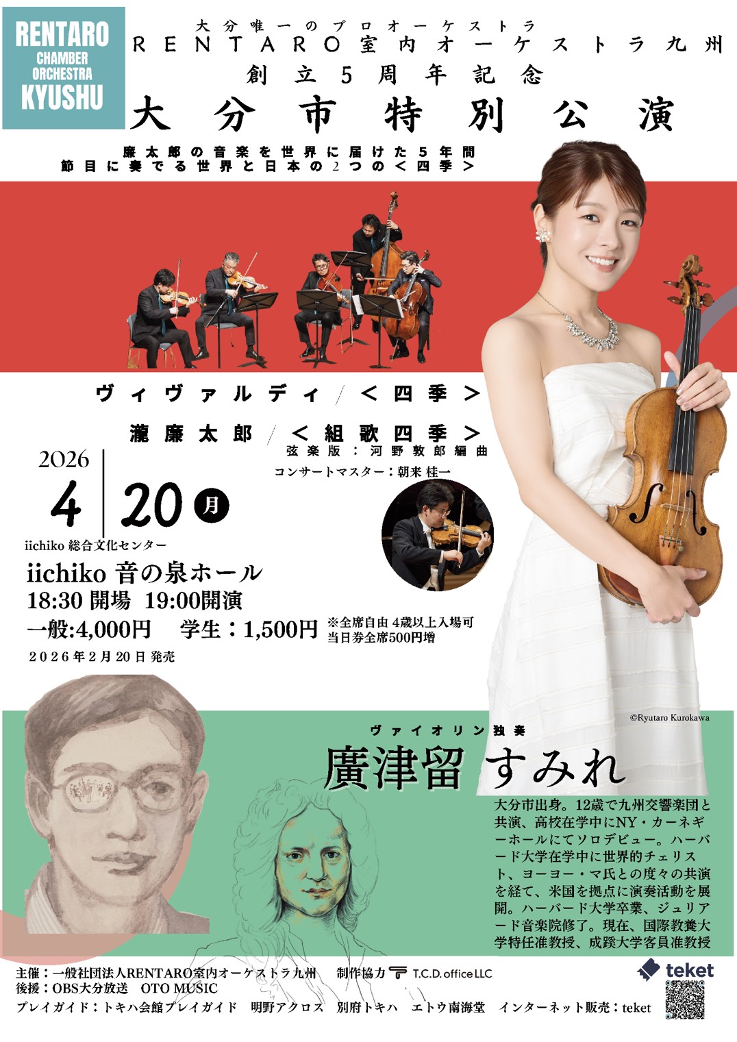 | 主催 | 一般社団法人 RENTARO室内オーケストラ九州 |
